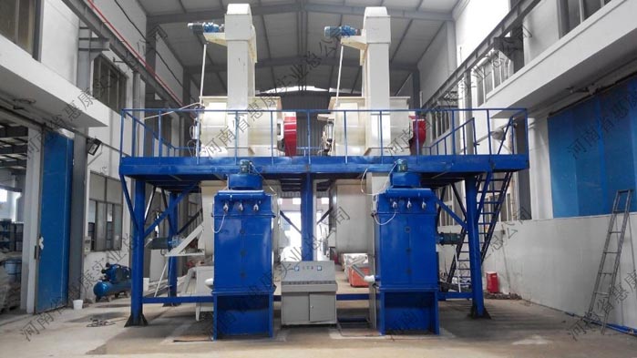 雙配套生產(chǎn)線是在節(jié)能型生產(chǎn)線的基礎(chǔ)上經(jīng)過改進而成,兩套生產(chǎn)線共用一套完整的鋼架平臺,結(jié)構(gòu)更加緊湊,兩套生產(chǎn)線獨立控制,互不影響,成倍提高產(chǎn)量的同時,節(jié)省資金投入。 總裝機功率80KW左右,設(shè)備占地面積50㎡,設(shè)備總高6米,廠房要求6.5m以上,生產(chǎn)所需工人4-6人,日產(chǎn)…