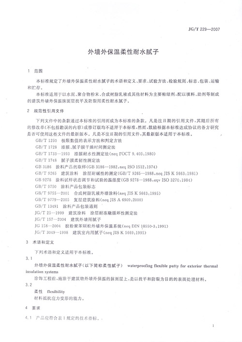 《外墻外保溫柔性耐水膩子》